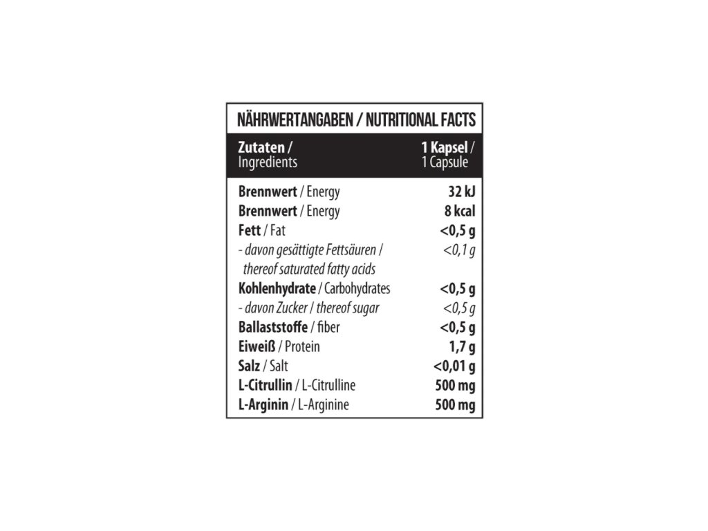 L-citrulin je aminokyselina, která se v těle přirozeně přeměňuje na L-arginin a následně na oxid dusnatý. Tato postupná přeměna zajišťuje stabilní a dlouhotrvající účinek bez náhlých výkyvů. Citrullin je oblíbený zejména pro svou schopnost podporovat vytrvalost, oddalovat únavu a zlepšovat svalovou odezvu při intenzivním tréninku.