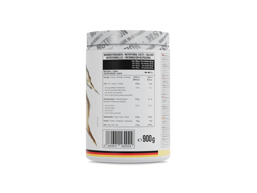 Na 100 g obsahuje 72 g bílkovin, nízký podíl cukru i tuků a jasně deklarované nutriční hodnoty bez skrytých složek. Transparentnost složení a kontrolovaná výroba jsou jednou z hlavních předností značky MST Nutrition.