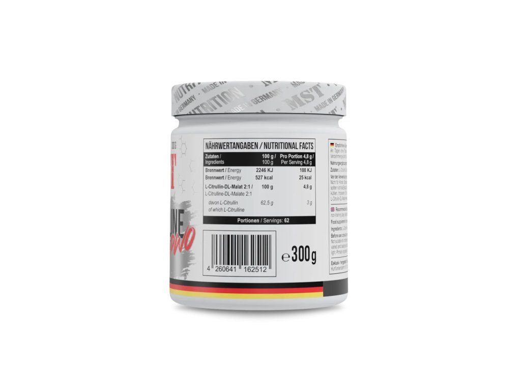 MST Citrulline Malate je oblíbený doplněk mezi sportovci, kteří chtějí zlepšit výkon, vytrvalost a kvalitu tréninku. Kombinace L-citrulinu a malátu (v poměru 2:1) zajišťuje efektivní využití v těle a podporu fyzické výkonnosti.