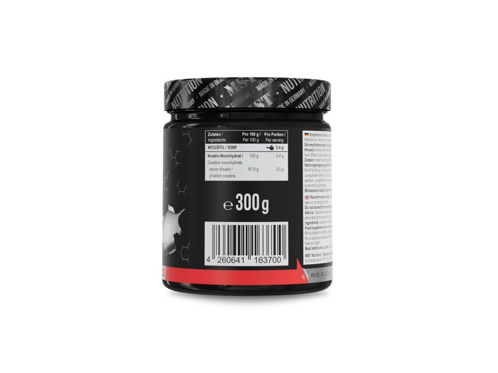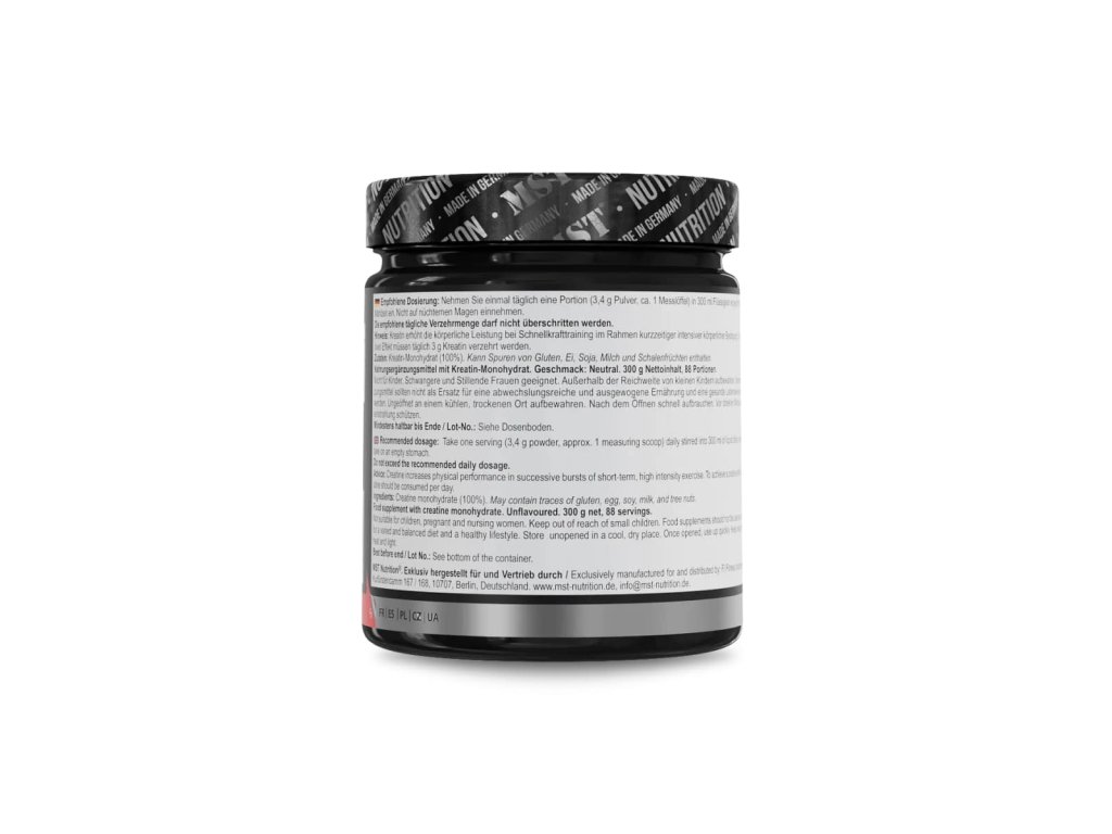 Síla, výkon a regenerace v každé dávce. MST® Creatine Monohydrate je 100% čistý, mikronizovaný kreatin farmaceutické kvality – bez příchutě, bez přidaných látek. Pomáhá zvyšovat sílu, výbušnost a objem svalů, zlepšuje regeneraci a výkon při každém tréninku. Každá porce obsahuje 3400 mg čistého kreatinu vyrobeného v Německu.