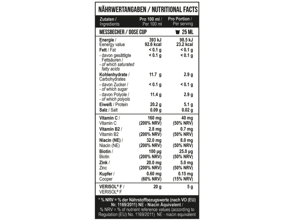 - Vitamin B2 – přispívá k normálnímu metabolismu a podpoře energetické rovnováhy.