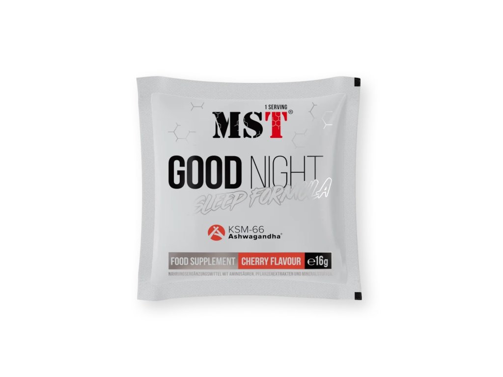 Hledáš přirozenou cestu k hlubšímu a kvalitnějšímu spánku? MST® Good Night Sleep Formula – Cherry spojuje GABA, KSM-66® Ashwagandha, L-theanin, levanduli, L-tryptofan a další složky, které pomáhají uklidnit nervový systém, snížit stres a podpořit klidný spánek. V praktickém 16g balení – ideální na vyzkoušení.