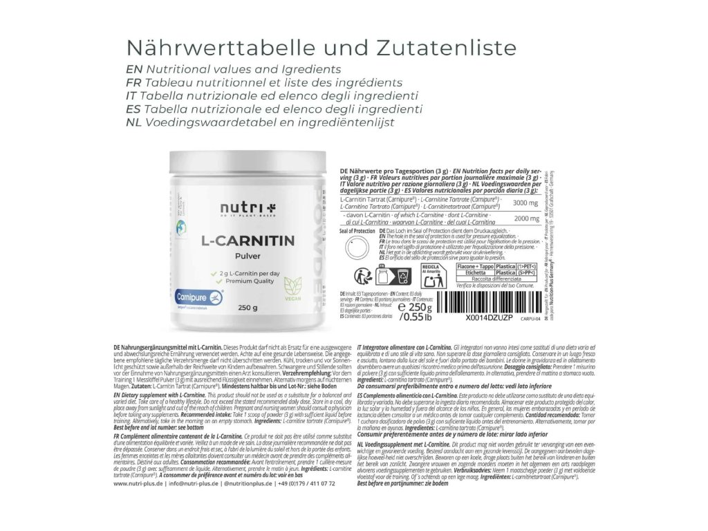 Produkt je přirozeně bezlepkový a 100% veganský. Neobsahuje žádné zbytečné přísady – jen čistý prášek L-karnitinu tartrátu.