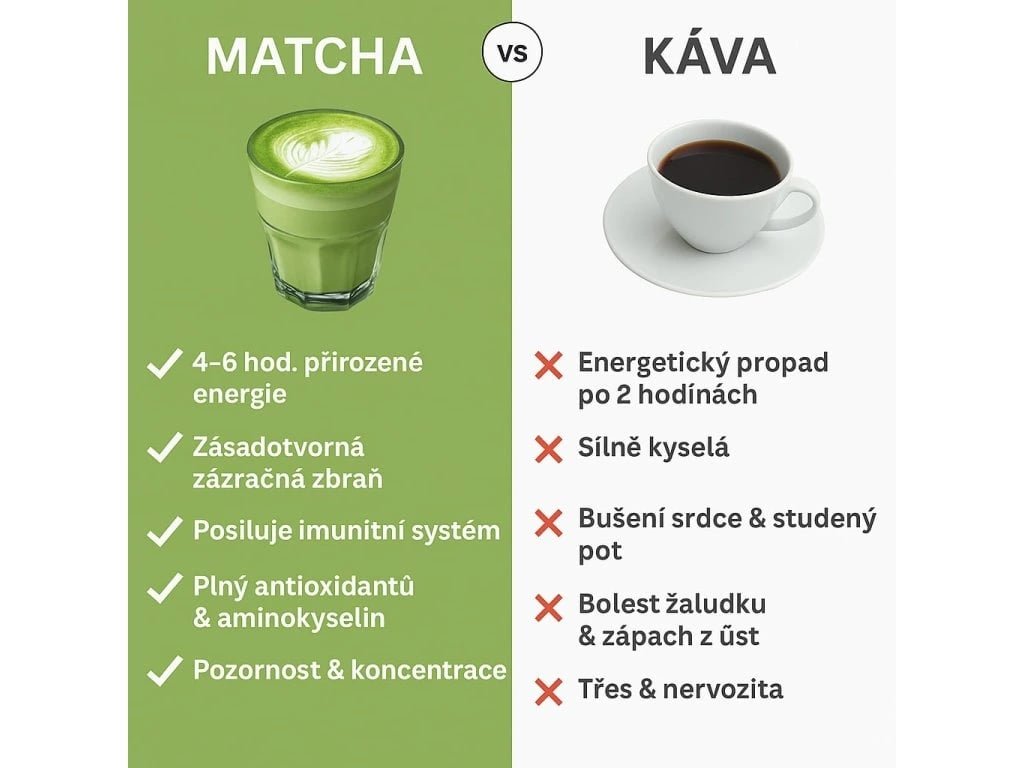 - Přírodní kofein z organické matchy (ne extrakt)