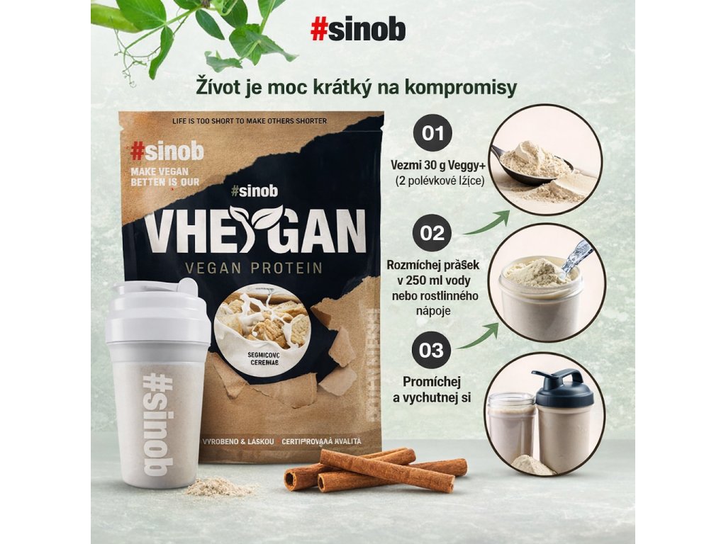 Vychutnej si rostlinný protein, který chutná jako skořicové cereálie a přitom ti dodá poctivou dávku bílkovin. Vheygan Veggy+ kombinuje hrách, rýži a fermentované BCAA pro kompletní aminokyselinový profil bez sóji a laktózy. Krémová konzistence, skvělá rozpustnost a 100% veganské složení bez kompromisů.