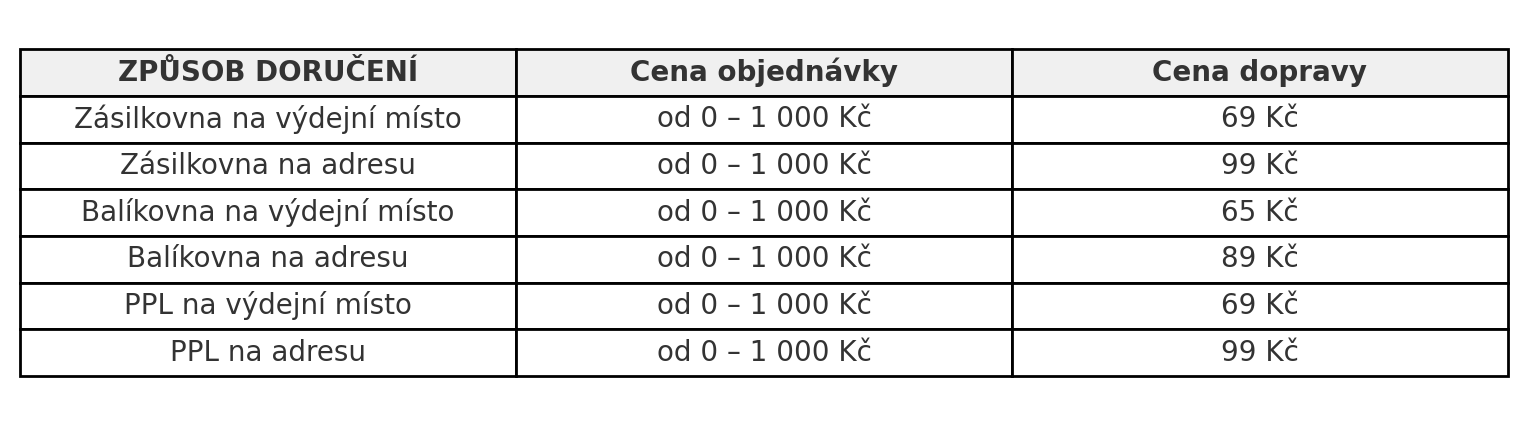 Doba doručení: Obvykle následující pracovní den ode dne předání zásilky dopravci.